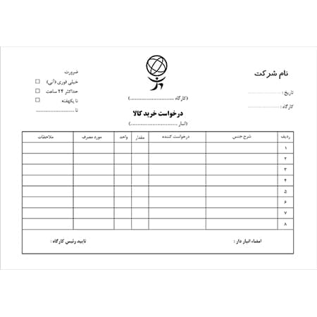 | 7 | دفترچه فرم اداری سایز A4 استاندارد (21*29.7) نوع چاپ یکرو (سیاه و سفید) نوع کاغذ گلاسه 135 گرمی پرفراژ ندارد نوع صحافی ندارد | 1 | 280,095تومان | 280,095تومان | |